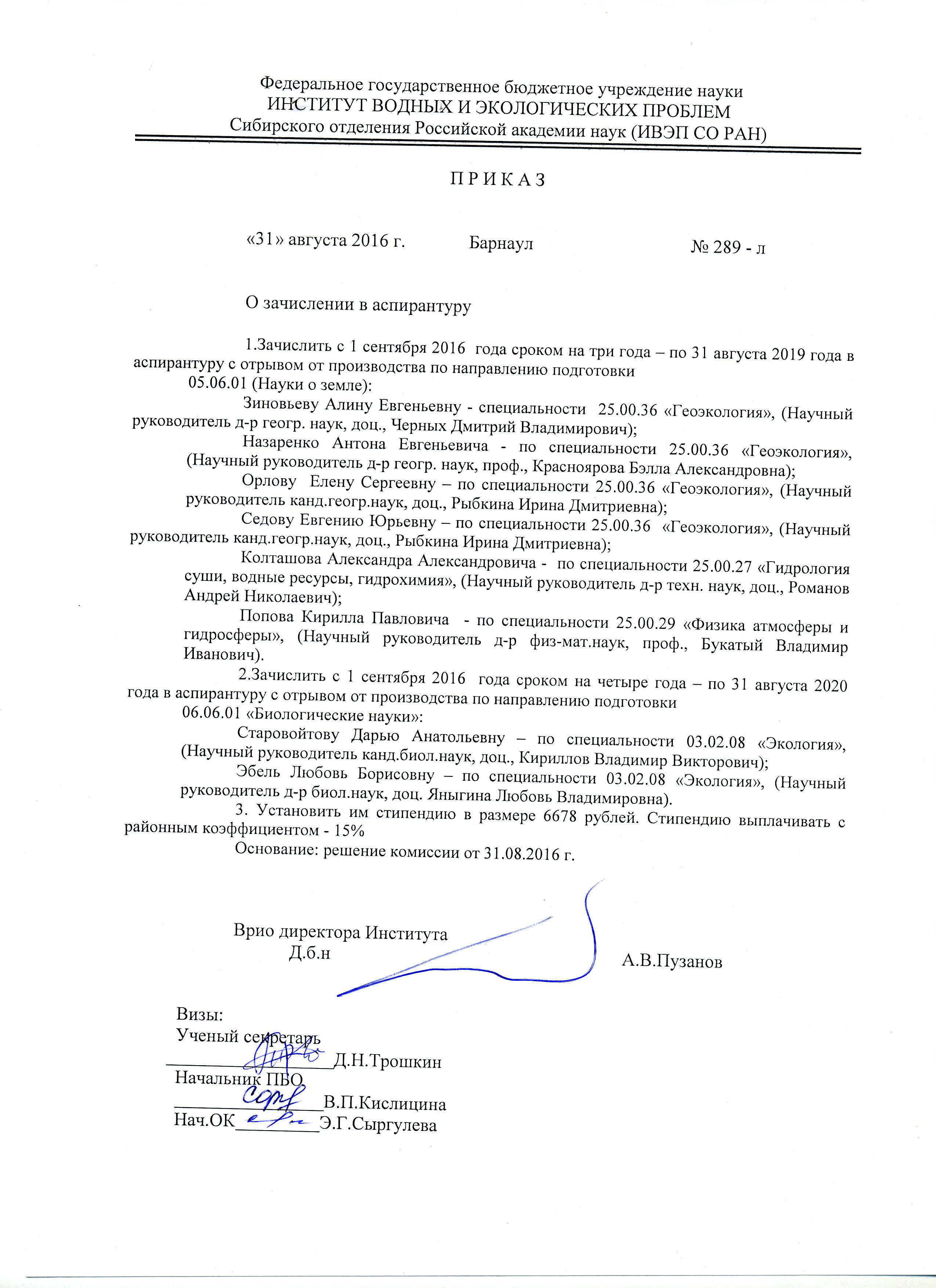 По результатам вступительных экзаменов в аспирантуру ИВЭП СО