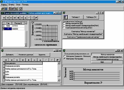 Программа ГИДРОСТАТИСТИКА 2.1 предназначена для расчета аналитических кривых обеспеченностей по методам моментов, наибольшего правдоподобия, графоаналитическому. Главная особенность программы заключена в реализации большинства стадий работы в автоматическом режиме. Формирование и вывод